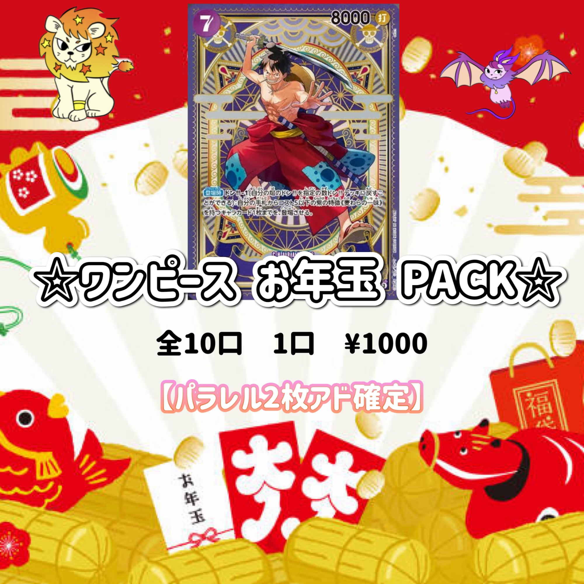 お年玉 PACKはお一人様ワンピースかポケカのどちらか1PACKまでのご購入とさせて頂きます。