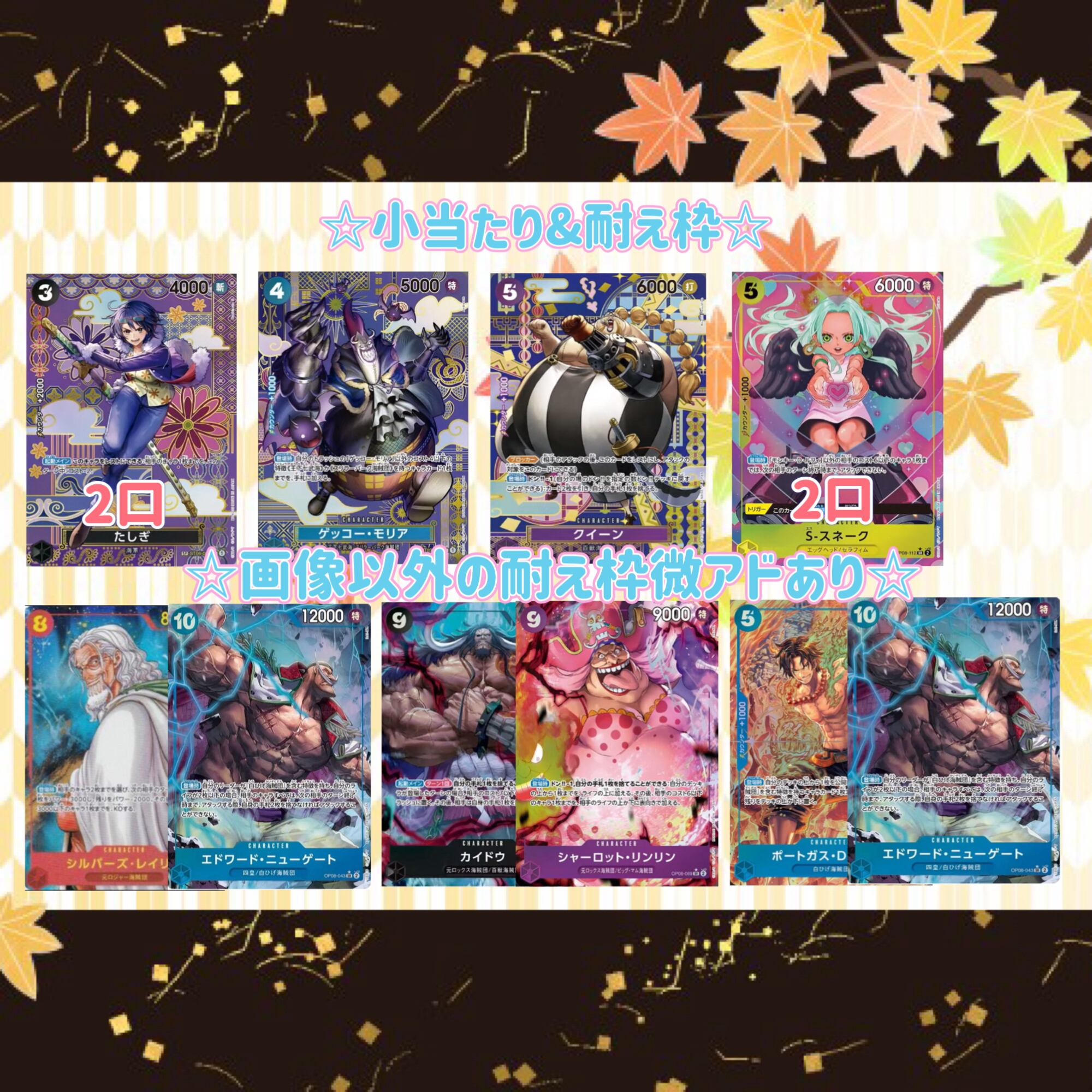 ・ハズレ枠の内約2割程最新弾のパラレルを封入しております。